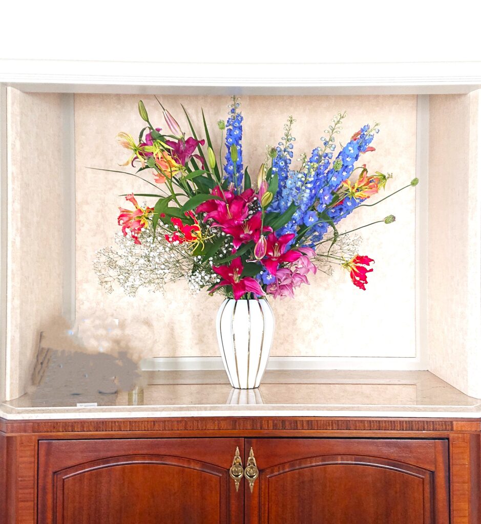 花のアレンジメントは、自然の美しさと花々の調べを調和させた作品です。私たちは季節の花や色彩を大切にし、花々の美しさと心温まる雰囲気を演出します。お部屋や空間を彩るアレンジメントは、日常の中にも特別な喜びを運びます。